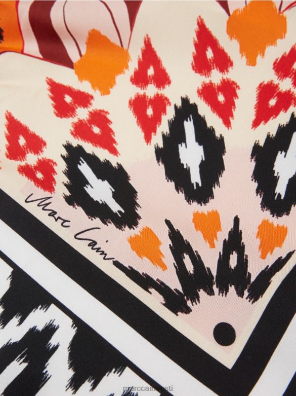 Lillemuster On Kujundatud Punase Troopilistes Toonides Ja Raamitud Kontrastset Värvi äärisega . Sall On Valmistatud 100% Siidist Ja Tundub Naha Vastas Kergena. See On Ruudukujuline Ja Servad On Rullitud.