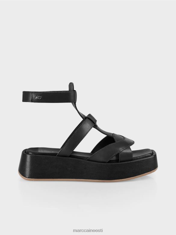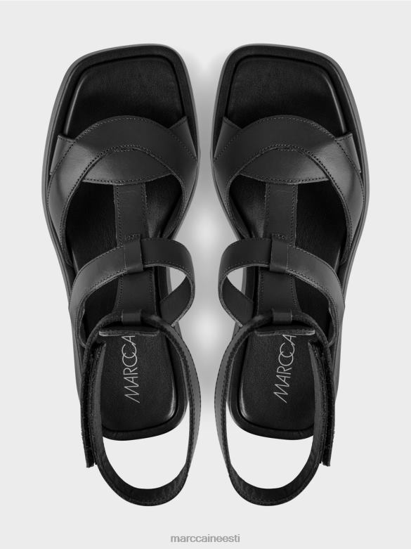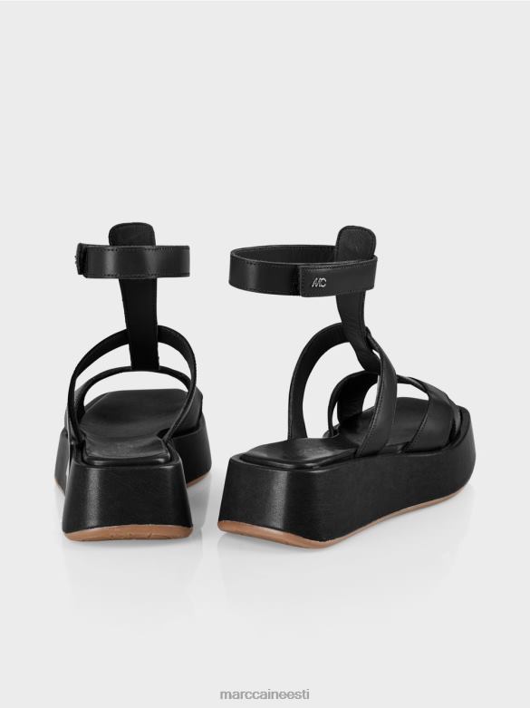 Pehme Sisetallaga Kandilised Sandaalid. Need Pahkluu Rihmade Ja Platvormtaldadega Sandaalid Loovad Stiilse Välimuse. Välimine Joon On Varbal Ja Kannal Ruudukujuline Ning Seda Iseloomustavad Laiad ümarate Detailidega Rihmad.