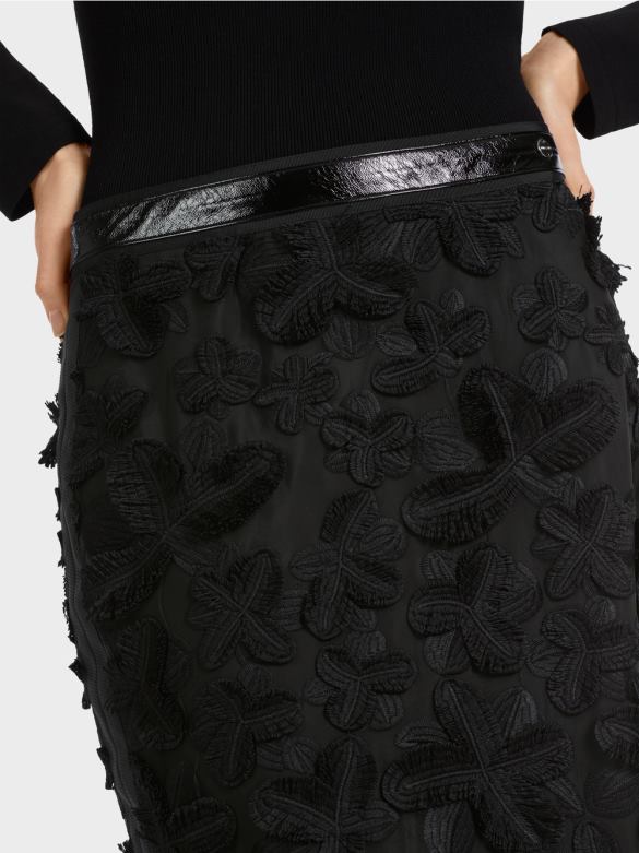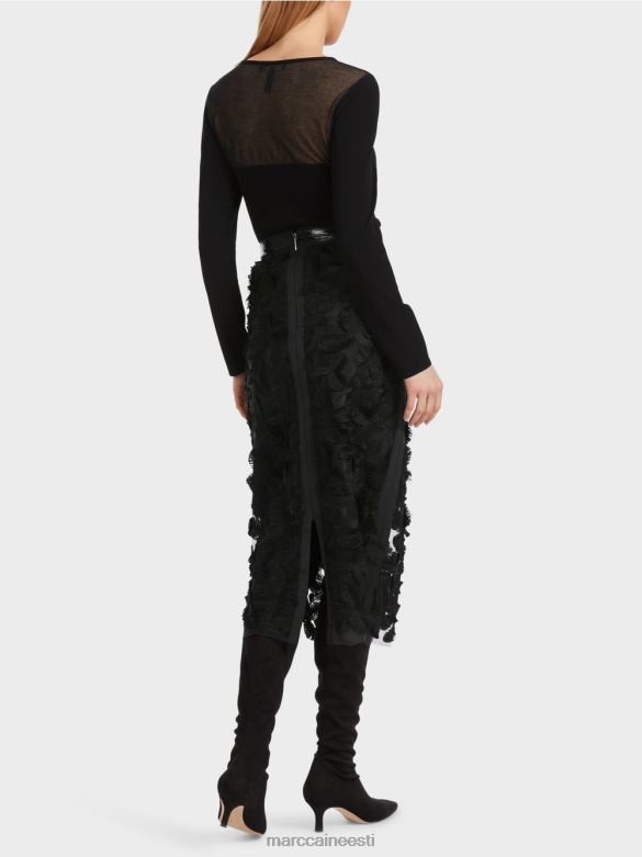 Pehmelt Langevast Tüllpitsist Figuuri Kallistava Lõikega Midiseelik. See Seelik On Elegantse Lillelise Disainiga. Poolläbipaistev Materjal Annab Sellele Erilise Iseloomu. Sel On Tagalõhik Ja Peidetud Tõmblukk.