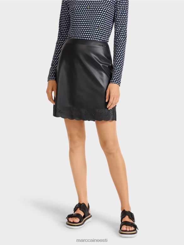 Laienev Lõige Ja Romantiline Ajour ääris Esitavad Väljakutse Musta Kunstnaha Rokipildile. Autentse Naha Välimuse Loob Polüuretaankate. Seelik On Tehtud Ilma Vöörihmata Ja Kinnitub Selja Keskosa Lukuga. Vooder Tagab Siledad Kontuurid.