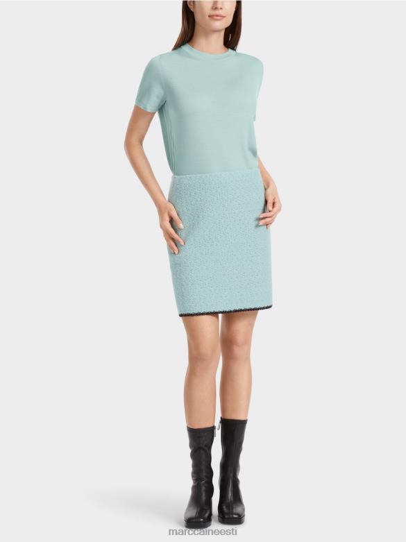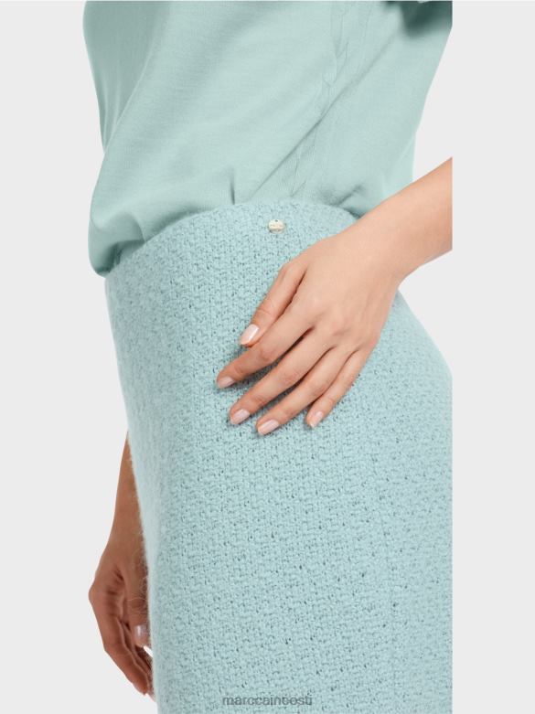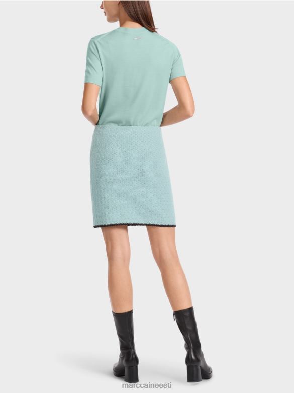 Figuuri Kallistav Miniseelik, Mille Allääres On Kontrastsed Triibud. See Voodriga Miniseelik On Kootud Alpaka, Villa, Mohääri Ja Puuvilla Segust Ning On Seega "kootud Saksamaal": Lõngade Kudumine Ultramoodsatel Kudumismasinatel Ja Kangaste Viimistlemine Toimub Saksamaal. üksikud Osad, Nagu Varrukad, Esiosa Jne, On Kokku õmmeldud Euroopa Partnerettevõtetes.