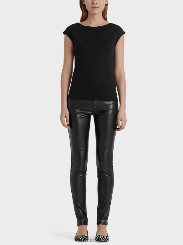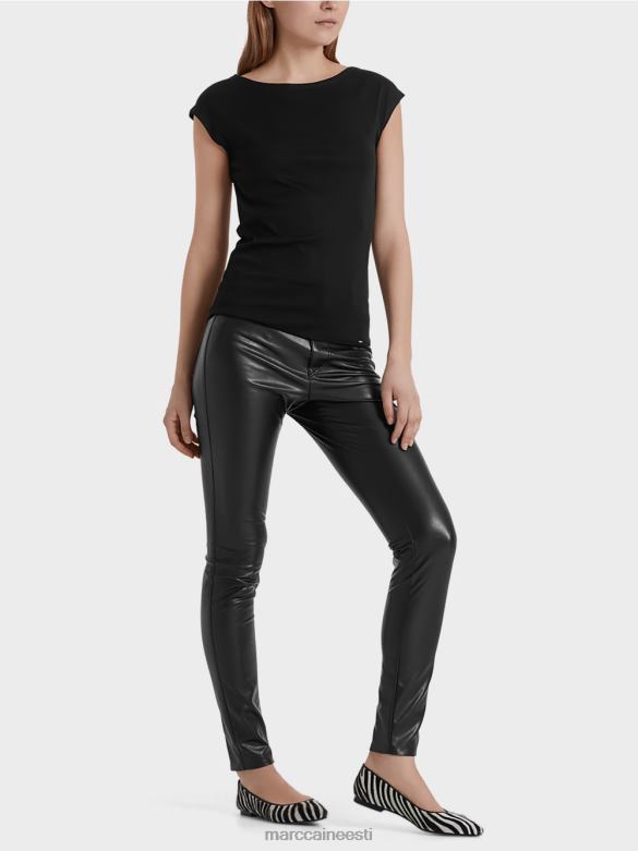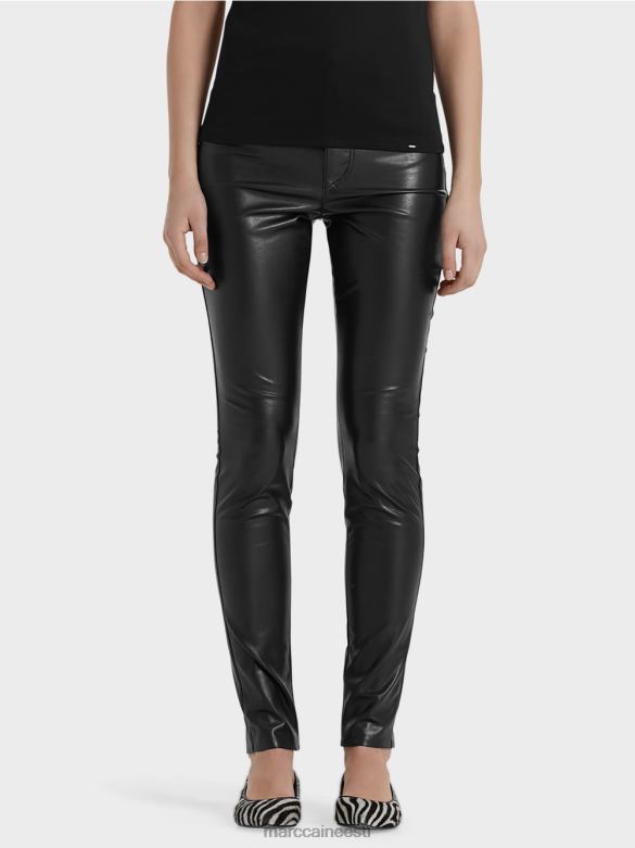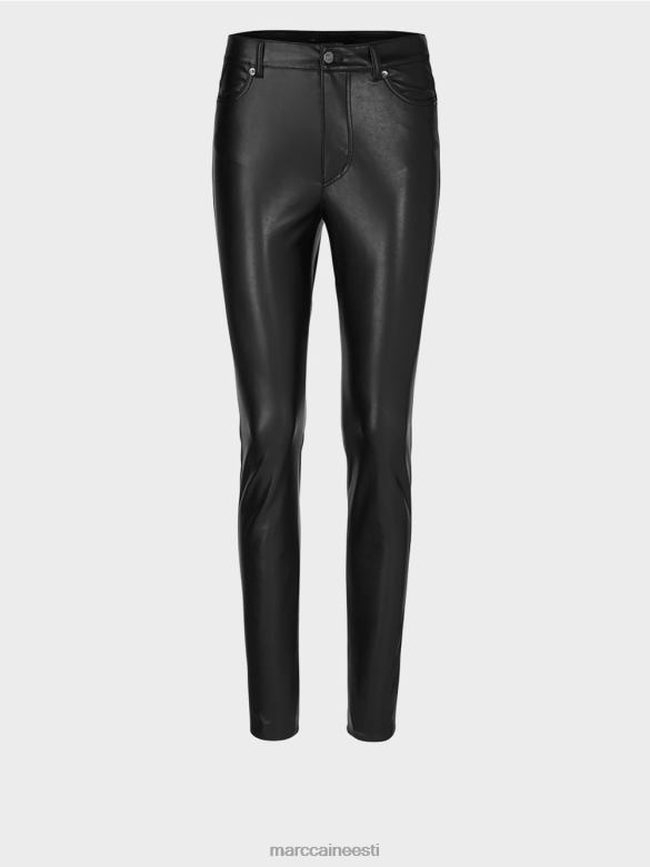 Elegantsed Stretšpüksid, Millel On Figuuri Kallistav Lõige, Kõrge Vöökoht Ja Kitsad Sääred. äravoolutoru Püksid On Kergelt Läikivast Kunstnahast Ning Neil On Neli Taskut, Vööaasad Ning Logonööp Ja Tõmblukk.