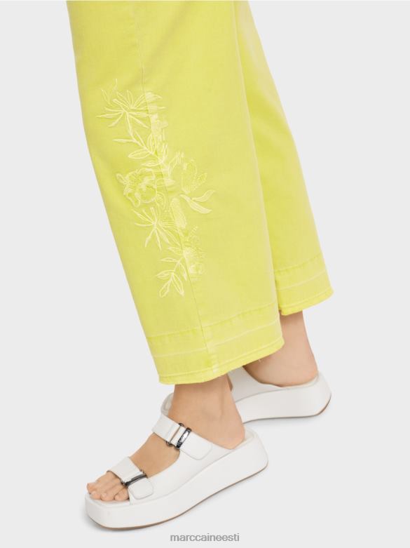 Värvilised Elastaaniga Puuvillased Teksad. Toon-toonis Tikitud Sääreosa Annab Neile Teksadele Naiseliku Noodi. Samal Ajal On Neil Vöökohal Ja Alläärel Juhuslikud Murelikud Detailid. Tõmblukk Ja Neli Taskut On Tüüpilised Teksaelemendid. Sirge Lõikega Siluett Ja Ike Täiendavad Seda Sportlikku Stiili.